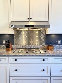 • Custom designed and sized to match to standard width cooktops and slide-in ranges.